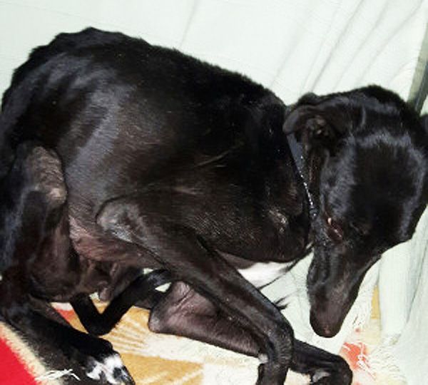 Die Jagdsaison ist beendet in Spanien und nun kommen wieder einige sehr traurige Fälle in die Tierheime. Milagros (Wunder) ist eine schwarze Galga, die einfach nicht mehr gefüttert wurde von ihrem Besitzer, bis sie vollkommen ausgezehrt von Tierschützern befreit werden konnte. Sie wartet nun im Pflegestellenhaus der Albergue und wird dort wieder aufgepäppelt.