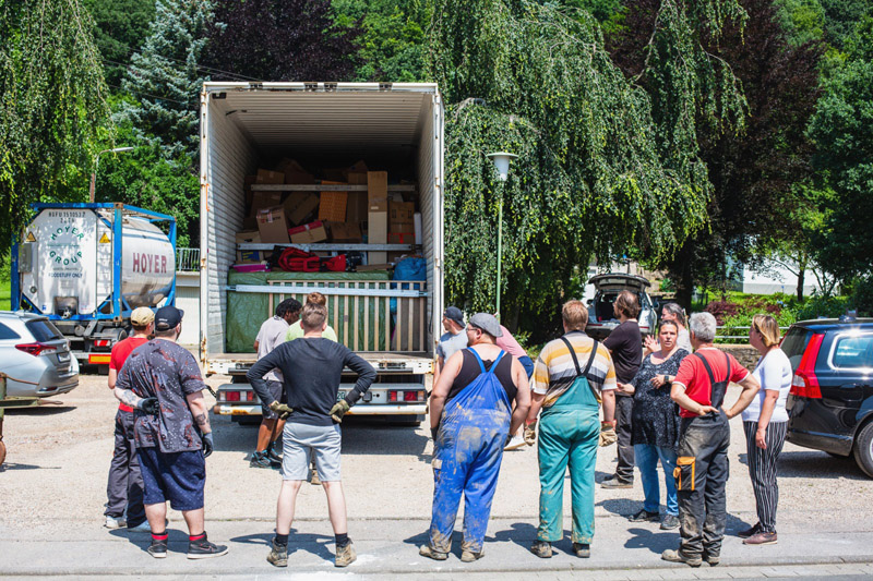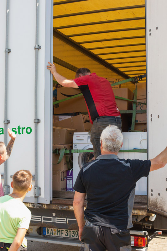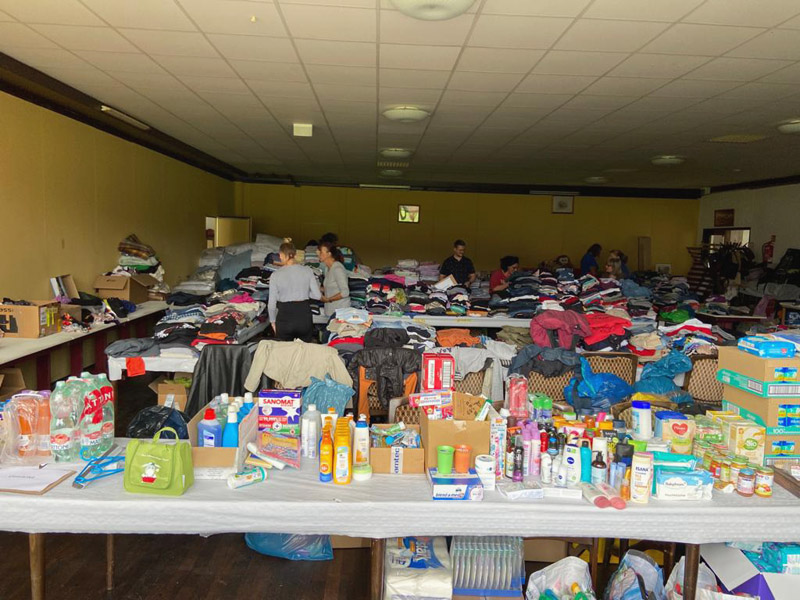 In den Spendenlagern wurden die Spenden sortiert, sodass vielen Menschen je nach Bedarf das Wichtigste schnell zusammengerichtet werden kann. Und wer nicht kommen kann oder möchte, dem wird natürlich etwas gebracht. Ihr könnt Euch ja sicher vorstellen, was für Gefühle in solchen Situationen aufkommen. Man plötzlich in fremde Kleider schlüpfen muss, alles Gewohnte und selbst Ausgesuchte und Aufgebaute für immer verloren ist.