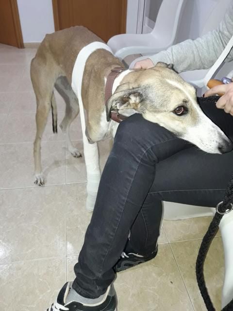 Galgo Hündin Rabona wurde erfolgreich am gebrochenen Vorderbein operiert und bekam dort eine Platte eingesetzt. Die operation ist gut verlaufen und nun erholt sie sich im Pflegestellenhaus der Albergue.