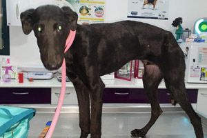 Mit den Tränen mussten unsere Mitarbeiter der Albergue kämpfen, als sie morgens das kleinen schwarze Galgobaby, am Zaun der Albergue angebunden, entdeckten.