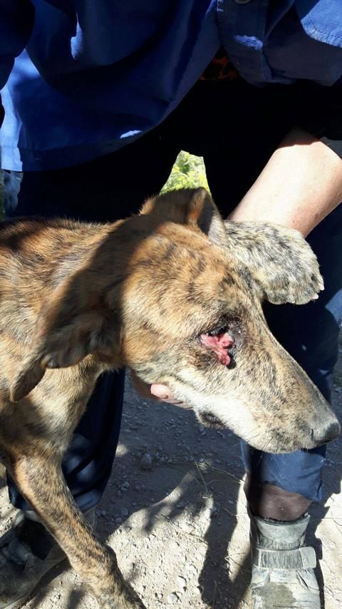 Das kleine Galgomädchen Milana wurde in Spanien morgens in ihrem Zwinger mit einer ausgedehnten Lidverletzung aufgefunden. Wie es zu dieser Verletzung kam, können uns die spanischen Tierschützer nicht sagen.