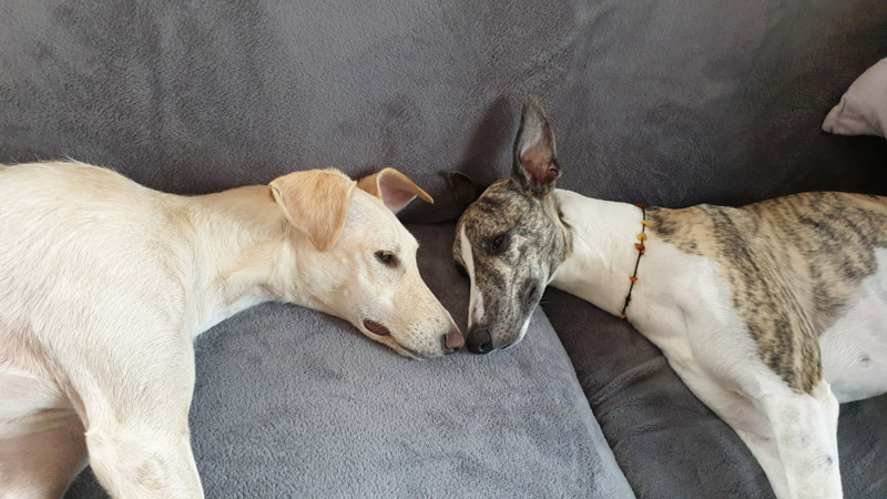 Und während in Spanien fleißig gearbeitet wird, genießen unsere Aspa-Hunde hier ihr Leben- das haben sie sich verdient. Und mit ihrer wunderbaren Art erfreuen sie uns. Geht es euch auch so? Manchmal könnte man ihnen stundenlang zuschauen… oder ist Euer Handy auch voll von Unmengen von Hundefotos? Ertappt Ihr Euch auch dabei, dass Ihr vollkommen unbequem auf der Gartenliege liegt, nur damit Euer Hund noch Platz hat?