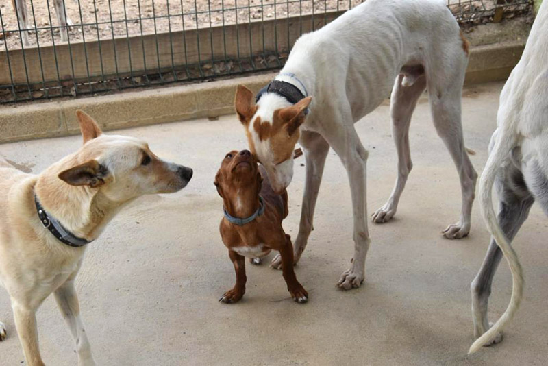 In den letzten News hatten wir auch von Sancho berichtet. Sancho hat sich gut im Tierheim integriert und er hat auch schon ein bisschen zugenommen. Bei der Blutuntersuchung fand sich ein leicht erhöhter LM-Titer ohne Hinweis auf eine manifeste Infektion. Sancho wird jetzt mit Medikamenten behandelt, erhält eine besondere Kost und Vitamine sowie Medikamente zur Stärkung der Immunabwehr. Bei der Genesung hilft ihm vor allem den kleine Podenco Turi- die Beiden sind ein Herz und eine Seele- immer zusammen nach dem Motto wo 'Du nicht bist, kann ich nicht sein' ;-))