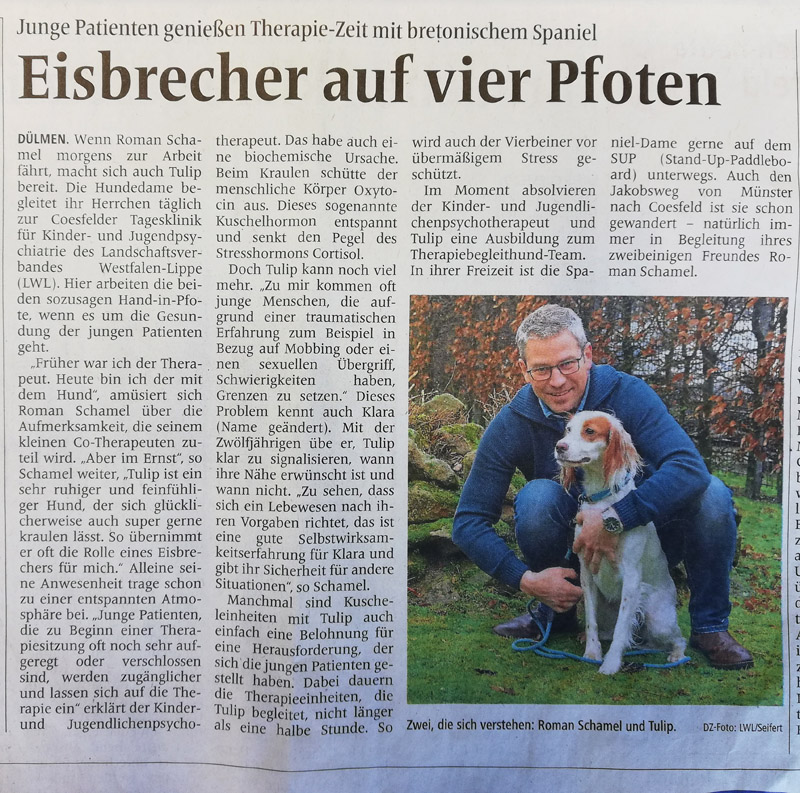 Post haben wir von Tulips Herrchen bekommen. Tulip ist ein echtes Talent. Zum einen geht sie zusammen mit Herrchen arbeiten, denn Tulip wurde zum Therapiebegleithund ausgebildet.
