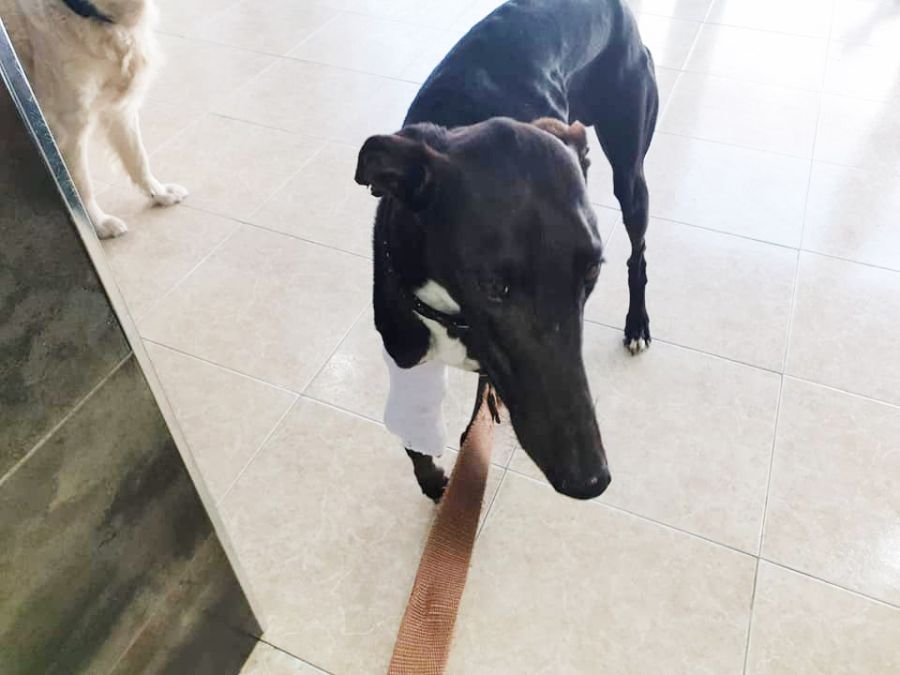 Galgo Damian war wieder zur Kontrolle in der Tierklinik. Es sieht gut aus und dank der Pflege von Pflegemama Angeles und der Begleitung von Rocio, geht es ihm ganz prima. Natürlich müssen wir weiterhin alle die Daumen drücken, dass es gut verheilt und beruhigt damit ganz bald die zweite OP stattfinden kann, wo noch Platten in das Bein eingesetzt werden müssen.