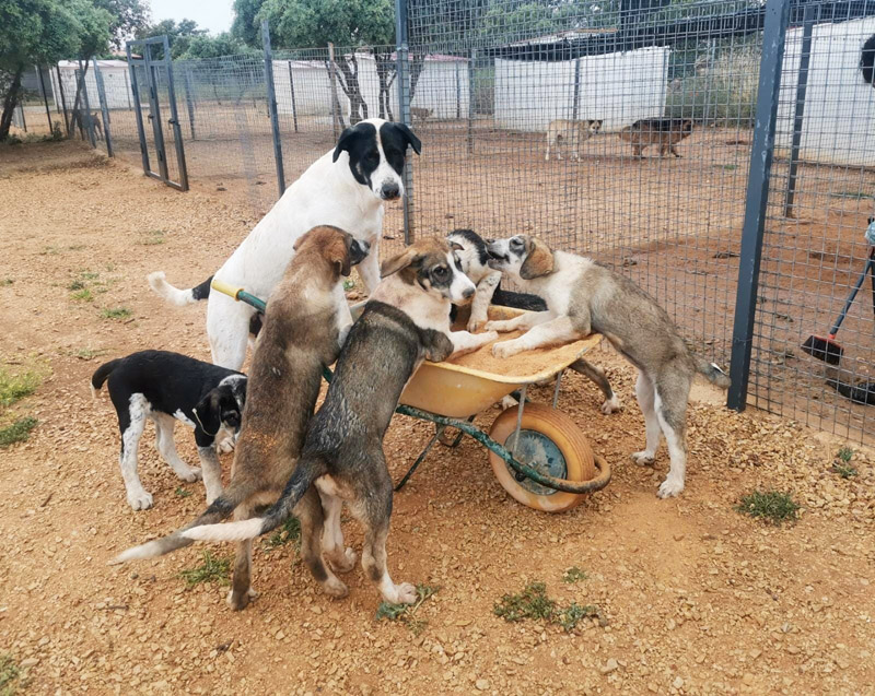 Adri und Ana sind zwei kleine Streuner, die in der Albergue aufgenommen wurden. Ana fehlt ein Auge und bei Adri war gleich eine knotige Veränderung im Gesicht aufgefallen. Adri wurde in der Tierklinik untersucht und es wurde ein CT durchgeführt. Das Ergebnis ist niederschmetternd. Adri hat einen großen, bösartigen Tumor, der bereits tief in die Kieferhöhle eingewachsen ist und somit inoperabel ist. Ana sollte nun gleich in die Vermittlung, damit sie eine Chance hat und so wurden die Beiden getrennt. Adri hat daraufhin gleich allen Lebensmut verloren und wollte nicht mehr fressen. So hat das Team vor Ort beschlossen, dass die Beiden Unzertrennlichen zusammenbleiben dürfen, solange es Adri noch gut geht. Die Beiden geniessen jetzt ihren Alltag, Adri frisst wieder seine passierte Kost und es schmeckt ihm wieder richtig.
