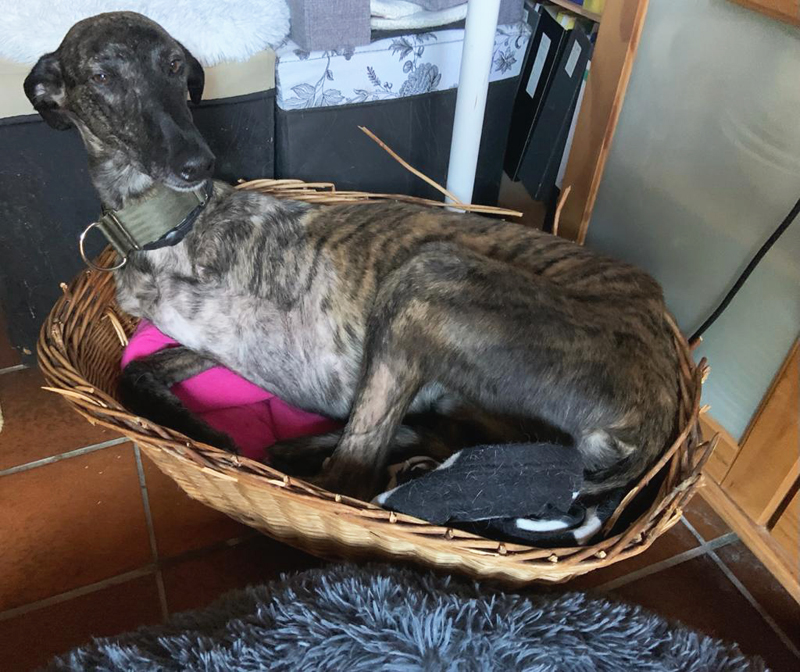 Pintas hat uns völlig verwundert. Sehr lange haben wir gemeinsam überlegt, ob wir ihn ausreisen lassen sollen, da er in Spanien fast 'handscheu' war. Wir waren uns nicht sicher, ob wir ihn einen wirklichen Gefallen tun und ob seine neue Familie dieser Herausforderung gewachsen sein wird. Seine Familie wollte aber nicht locker lassen und hat uns dann doch überzeugt. Und was macht Pintas- er wirft alle Fragen ruckzuck über Bord, blüht hier auf, tobt jetzt mit seiner Pointerfreundin durch den Garten und liegt mit Herrchen und Frauchen gemeinsam auf dem Sofa. Er hat uns alle wirklich in unendliches Staunen versetzt und gleichzeitig so berührt. Aus einem Häufchen Elend, ist ein so ein lebensfroher Hund geworden.