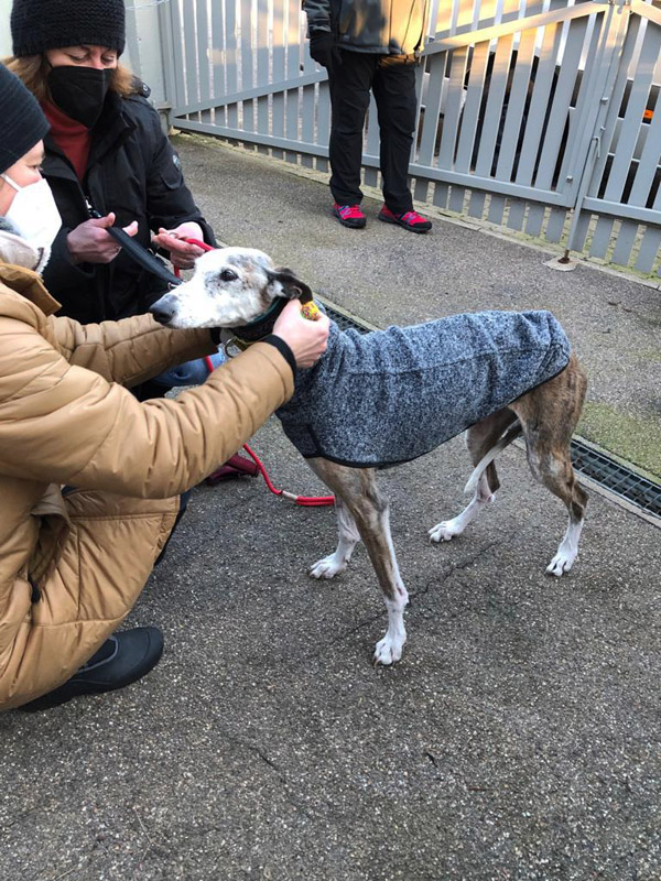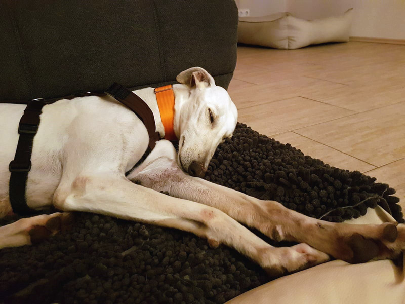 Besonders haben wir uns natürlich gefreut, dass unsere beiden alten Galgodamen noch so ein schönes Zuhause gefunden haben. Paloma musste sich erst mal richtig ausruhen nach der langen Reise, während Carla fast hüpfte vor Freude, als sie aussteigen durfte.