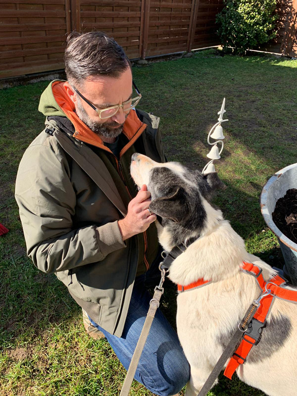 Junghund Bruno verblüffte uns völlig, in Spanien noch sehr ängstlich, scheint er sich nun in seinem Rudel völlig wohl und schon recht sicher zu fühlen.