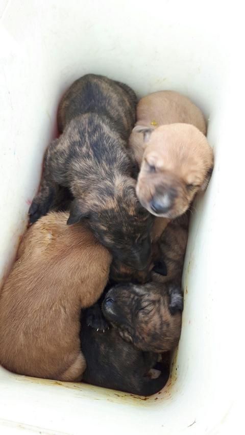 Am 16. Mai machte das Team eine besonders traurige Entdeckung. Auf dem Feldweg zur Albergue stand eine bunte Kühltruhe ohne Deckel. Wieder einmal wurden 6 Welpen herzlos ausgesetzt. Gerade mal 15 Tage alt waren die kleinen Mäuse, sie fingen gerade an die Augen zu öffnen. Die armen Kleinen waren durstig und hungrig, aber Gott sei dank alle am Leben. Zwei werden nun von Pepi, zwei von Rocio und zwei von Eva mit der Flasche großgezogen. Nach einigen anfänglichen Sorgen machen sich die Kleinen nun wieder prächtig. Drei hatten mit schlimmen Magen-Darm Problemen zu kämpfen und das tapfere spanische Team hat es geschafft alle über den Berg zu bringen. Wir hoffen, dass es weiter nur Bergauf geht mit den kleinen Mäusen und sie stark bleiben. Drückt bitte alle weiterhin die Daumen.