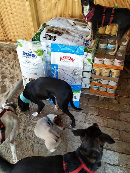 Vielen herzlichen Dank an den Tierschutz-Shop und seine Spender. Wieder hat eine kleine Lieferung wichtiges Futter den Weg zu unseren Hunden gefunden. Da werden direkt gleich ein paar leckere Dosen geöffnet um von den schon wartenden Hunden verputzt zu werden.