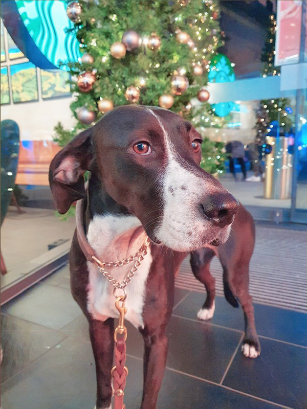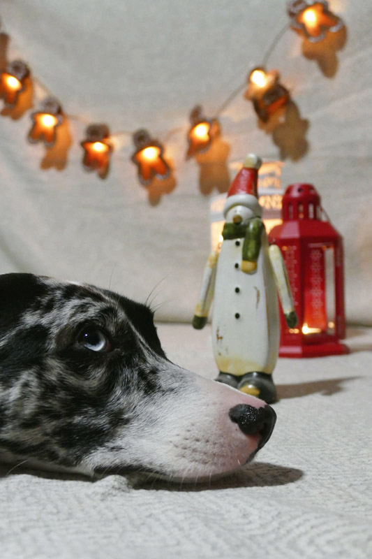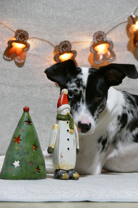 Inaya übt für das ultimative Weihnachtshund-Foto