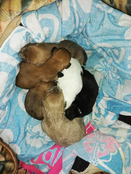 Das freiwillige Helferteam der Perrera Villarrobledo hat einen Karton mit 6 ganz kleinen Welpen aufgefunden und diese auf verschiedene Pflegestellen verteilt. Dort werden die Kleinen mit ganz viel Liebe, Erfahrung und Fürsorge mit der Flasche aufgezogen. In der ersten Nacht hat sich Hündin Bruja den Kleinen angenommen und sie als Ersatzmama gut betreut. Bruja muss sich nämlich auch auf einer spanischen Pflegestelle von ihrer Fermurkopfresektions-OP erholen. Wir hoffen, dass alle es schaffen und zu tollen Hunden heranwachsen werden.