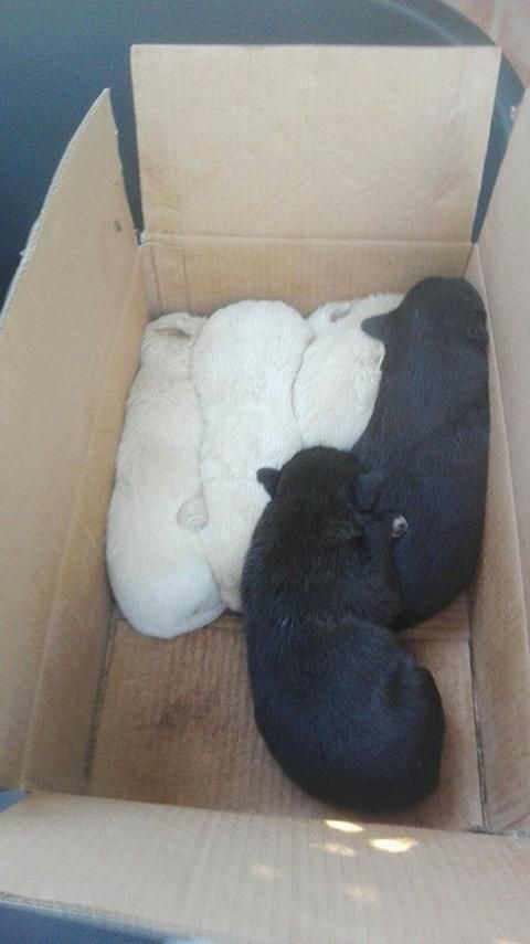 Das Team der Albergue fand vor ein paar Tagen am Morgen einen Karton mit ganz kleinen Welpen.