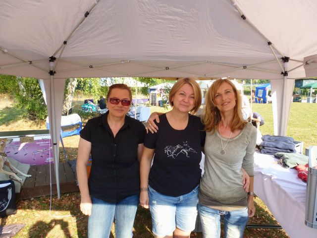 Daniela (Mitte), unsere Frau vom Shop hatte alles wunderbar vorbereitet und sogar ihren Jahresurlaub verschoben und gekürzt, um beim Fest als auch bei unserem Sommerfest dabei zu sein. Karin (li) kam früh morgens zum Aufbau,