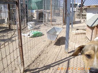 Nach wie vor ist der Zaun zum Teil geflickt, nicht ausbruchsicher genug und birgt auch immer wieder Verletzungsgefahren. Hier seht ihr auf dem Bild einen alten Matratzenrost, der als Zaunelement herhalten muss oder es wird mit Holzpaletten gearbeitet. Dazu kommt, dass Zwinger oft notfallmäßig neu unterteilt werden müssen, da die Albergue und auch die Perrera nach Ende der Jagdsaison geradezu mit Hunden "geflutet"werden. So klemmt es immer wieder durch die Überbesetzung an allen Ecken und Enden.