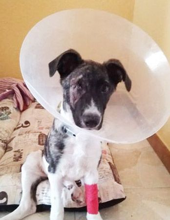 Der Junghündin Deya musste das rechte Auge entfernt werden :-( Deja ist die einzige Überlebende aus einem Wurf Welpen mit 8 Brüdern. Sie wurden alle zusammen Anfang August 2019 alleine und krank auf dem Feld gefunden. Nach und nach gingen die kleinen Brüder viel zu früh von dieser Welt, obwohl das spanische Team alles in seiner Macht stehende tat, um die Kleinen zu retten aber nur Deja hat es geschafft. Leider hat Deja ein paar gesundheitliche Probleme, die die Tierärzte nun nach und nach in den Griff bekommen wollen. Auf einem Auge erschien etwas, dass wie ein Geschwür aussah. Leider konnte das Auge nicht gerettet werden, da es Flüssigkeit verloren hatte und so wurde am 01.10.2019 das rechte Auge entfernt. Die OP hat Deya prima überstanden und es geht ihr und dem linken Auge sehr gut. Die anfängliche Mangelernährung, die Deya als Welpe vorher wohl erleiden musste, hat leider Spuren in der Entwicklung ihrer Knochen hinterlassen, sodass diese noch nicht ganz korrekt gewachsen sind. Der Mineralstoffmangel wird nun versucht durch Aufbaupräparate und mit Spezialfutter in den Griff zu bekommen. Sie entwickelt sich jeden Tag weiter und macht Fortschritte. Ansonsten ist Deya ein normaler, fröhlicher junger Hund. Sie lebt in einer Pflegestelle mit mehreren Hunden, Kindern und Katzen harmonisch zusammen. Sie ist offen, sehr freundlich und sehr verschmust zu Jedermann. Eine wunderschöne und liebe Hündin, die sicherlich viel Freude in das Leben einer Familie bringen würde, die über ihre kleinen Handicaps hinwegsehen und sie so lieben, wie sie ist.