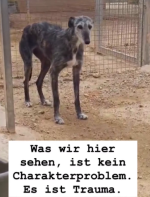 ... sie duckt sich bei jeder Bewegung. Nicht, weil sie 'so ist', sondern weil sie gelernt hat, dass Angst überlebenswichtig ist. Die Jagd mit Galgos Podencos und anderen Gebrauchshunderassen hinterlässt Spuren, sichtbare und unsichtbare. Diese Hunde werden körperlich verschlissen und seelisch zerbrochen, wenn sie nicht mehr funktionieren. Was wir hier sehen, ist kein Einzelfall. Es ist Realität. Sie können nicht sagen, was sie erlebt haben. Aber wir können es benennen. Sei du ihre Stimme.
