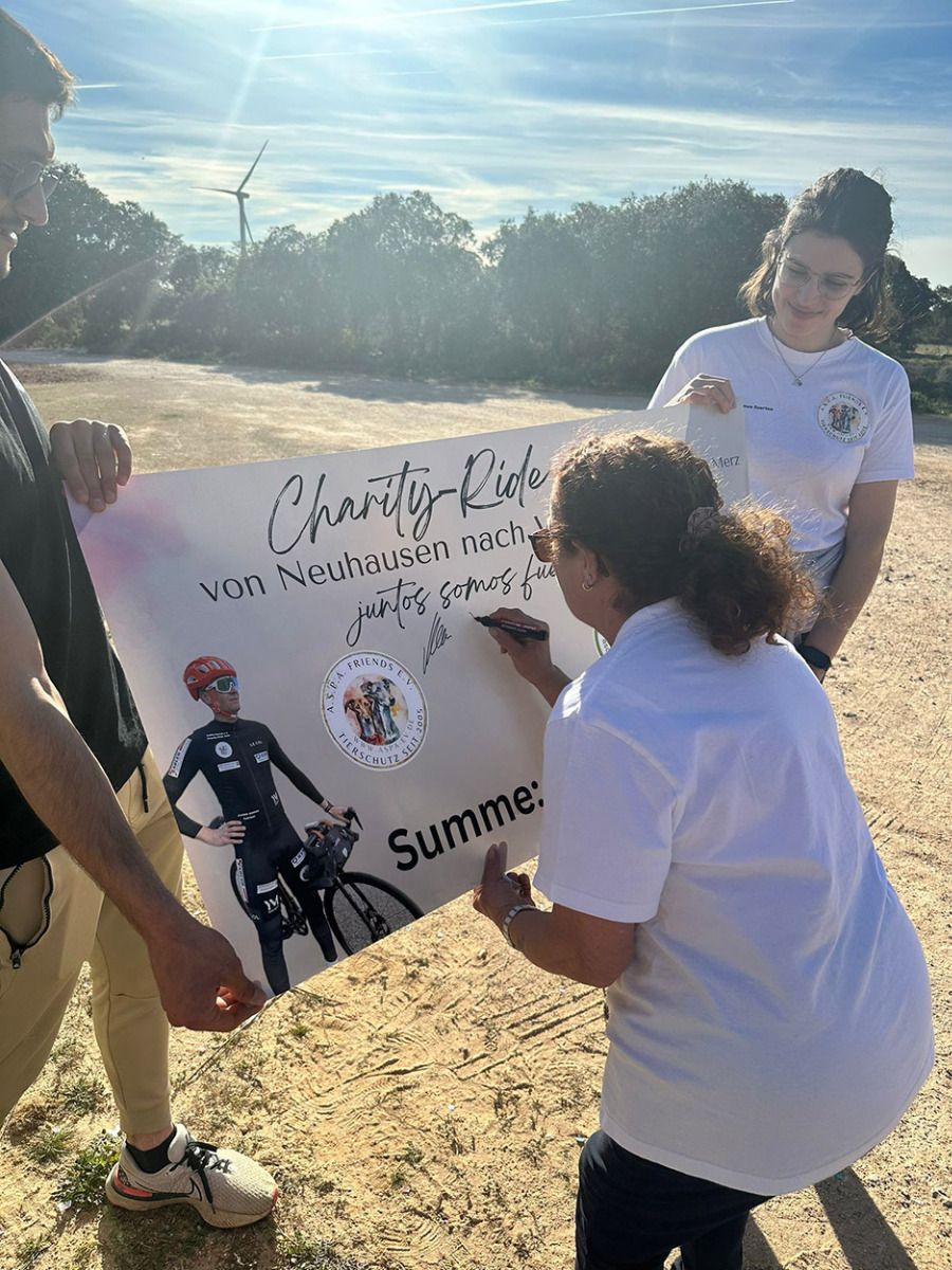 Jetzt muss er sich erstmal ausgiebig erholen. - Auf meiner letzten Etappe kostete ich bei strahlendem Sonnenschein jeden einzelnen Meter voll aus ☀️😍 In Gedanken war ich, bei den mittlerweile weit über 100 Nachrichten, die ich von euch in dieser Zeit erhielt und zutiefst dankbar!🫶🏻 Als ich beim Tierheim ankam war ich völlig überwältigt von der Euphorie und Freude, die mir entgegengebracht wurde, dieses Erlebnis werde ich niemals mehr vergessen!❤️ Gemeinsam haben wir Großes erreicht, etwas das für immer bleiben wird - Juntos somos fuertes 💪🏻🚵 - Etwas über 13.000 Euro kam durch den 'Charityride für die Albergue' zusammen. Dass wir weiterhin so vielen Hunden helfen können🧡![]()
