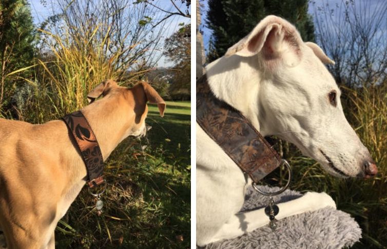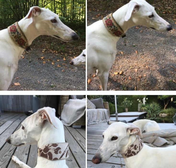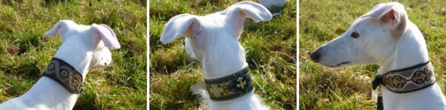 Schöne handgefertigte Windhundhalsbänder (und natürlich für alle anderen Rassen) gibt es bei Canifact.