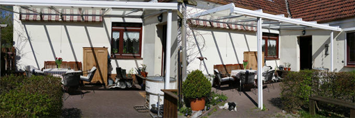 Hier mit Edelstahlkugeln dekoriert, was weder Hunde noch Vögel stört und täglich genutzt wird.