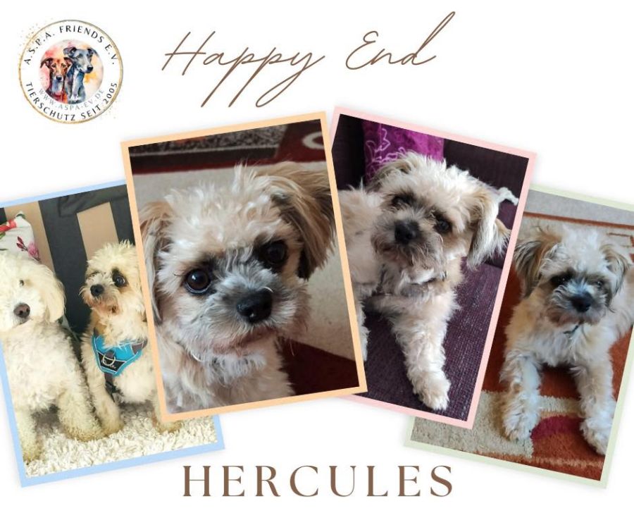 Am 27. Dezember 2021 musste ich meine Paula einschläfern lassen. Das hat mich total runtergezogen. Ich bin so gut wie nicht mehr rausgegangen und habe nur getrauert. Nach einigen Wochen war klar: um wieder Lebensfreude zu bekommen, musste eine neue Fellnase her. Und nachdem Paula schon aus dem Tierschutz gestammt hatte, war sicher, dass der neue Hund wieder aus dem Tierschutz kommen sollte. Nun begann die Suche und bald entdeckte ich Hercules und es war Liebe auf den ersten Blick! Also ganz schnell die Vorauskunft ausgefüllt und abgeschickt. Drei Tage nach meinem Geburtstag teilte Anna mir mit, dass Hercules zu mir kommen durfte. Das war mein schönstes Geburtstagsgeschenk! Am 10. April 2022 gegen 12.00 Uhr konnte ich Hercules endlich in Empfang nehmen.