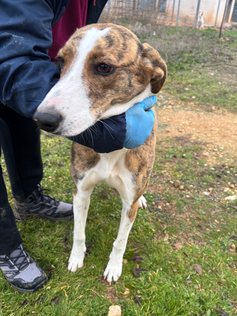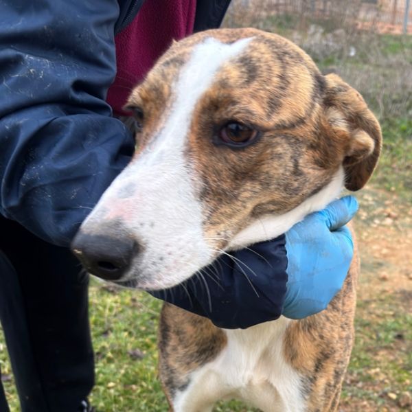 Kira, ein etwa 60cm großes Galgo-Mädchen hat ihr Zuhause verloren. Ihr ehemaliger Besitzer, ein schon deutlich älterer Mann, adoptierte sie unüberlegt als Baby. Nun steht ihm eine Operation bevor, und er zieht gemeinsam mit seinem Sohn in eine andere Stadt. Für Kira war dort kein Platz vorgesehen, deshalb ist sie im Dezember 2025 in der Albergue gelandet. Ganz ehrlich: Für Kira ist das sicherlich ein Glücksfall, denn jetzt kann sich die hübsche Galga auf 'den Weg' machen, um ein Zuhause bei zuverlässigen und loyalen Menschen zu finden, die sie nie wieder abgeben werden und wo sie als festes Familienmitglied angesehen wird. Kira möchte ihr Köfferchen in der Albergue gar nicht auspacken, zu sehr hofft sie, dass sie ganz schnell eine Familie findet. 🥰 Wo sind die Leute, die Lust haben, Kira an 'der Hand' zu nehmen, ihr unser Leben zu zeigen und Freude daran haben, Kira das 'Hundeeinmaleins' beizubringen? Interessenten sollten sich über die Rasse Galgo espanol informieren. - Eine Vermittlung ist ausschließlich innerhalb Deutschlands möglich.