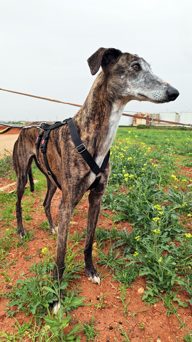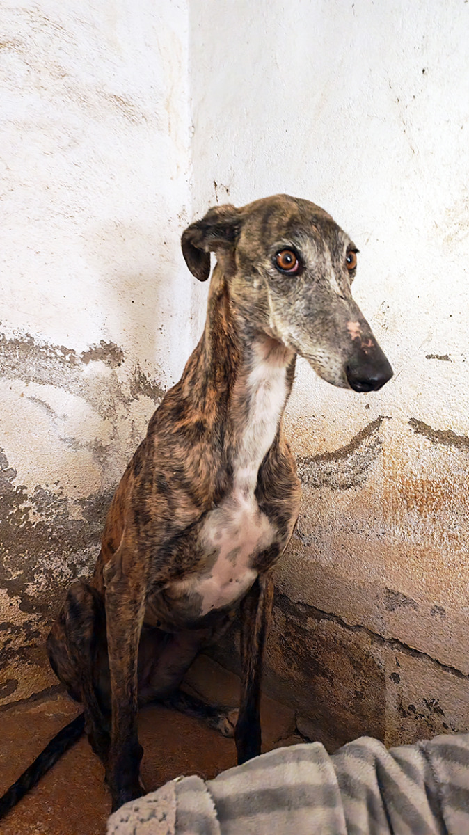 Ira – zarte Galga auf der Suche nach ihrem Glück - Ira befindet sich seit Ende März 2026 in der Perrera. Gemeinsam mit ihren Gefährtinnen Nina und Beauty wurde sie von ihrem Jäger selbst dort abgegeben – wie so oft mit der Begründung, man habe 'keine Verwendung mehr' für sie. Die drei verstehen sich wunderbar und teilen sich aktuell einen Kennel, in dem sie sich gegenseitig Halt geben. Ira ist eine wunderschöne Galga mit einem ganz feinen, liebevollen Wesen. Sie kennt bereits das Laufen an der Leine und zeigt sich dabei als echtes Naturtalent. Dennoch braucht sie ein wenig Zeit, um Vertrauen zu fassen. Fremden Menschen begegnet sie zunächst vorsichtig, etwas schüchtern und zurückhaltend – dabei aber stets freundlich, sanft und brav. Wenn sie jemanden jedoch besser kennenlernt, kann sie sich sehr gut auf ihn einlassen und beginnt, die Nähe des Menschen sichtlich zu genießen. Mit anderen Hunden ist Ira absolut verträglich, ganz gleich ob groß oder klein, Rüde oder Hündin. In der Perrera zeigt sie sich sozial und ausgeglichen. Was Ira jetzt dringend braucht, ist ein Zuhause, in dem sie ankommen darf. Einen Ort, an dem sie in ihrem Tempo Vertrauen aufbauen kann und vielleicht zum ersten Mal in ihrem Leben echte Zuneigung, Nähe und Geborgenheit erfährt. 🐾 Interessenten sollten sich über die Rasse Galgo español informieren. - Eine Vermittlung ist ausschließlich innerhalb Deutschlands möglich.