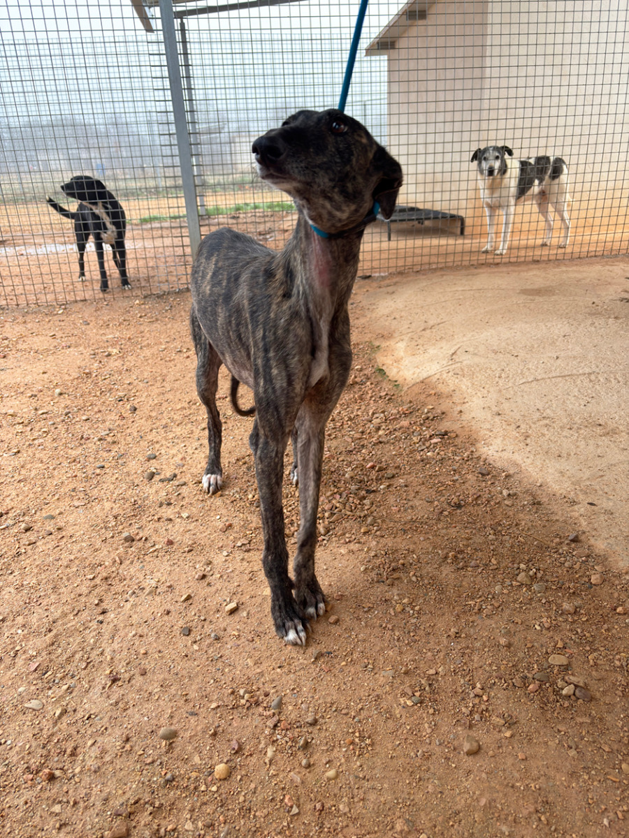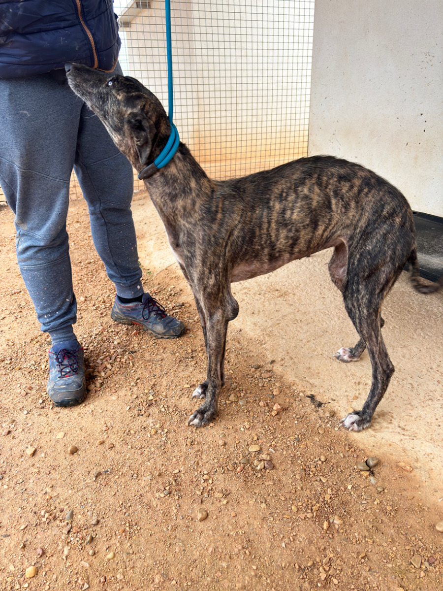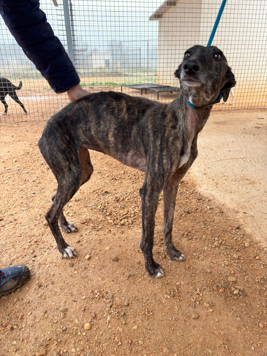 Kurz vor Weihnachten wurde diese wunderschöne Galga allein auf den Straßen gefunden. Es war bitterkalt, auch in Spanien, und Santa zitterte vor Kälte. Auf der Suche nach etwas zu essen irrte sie umher, bis sie endlich gesichert und in die Albergue gebracht werden konnte. Dort bekam sie als Erstes eine große Portion Futter, über die sie sich mit sichtbarem Appetit hermachte, ein Moment der Erleichterung nach vermutlich langer Entbehrung. Da sie kurz vor Weihnachten ankam, gaben ihr die Mitarbeitenden liebevoll den Namen Santa. 💗 Santa ist etwa 5 Jahre alt und könnte somit im Jahr 2020 geboren worden sein. Bei ihrer Ankunft wurde eine Schleimbeutelentzündung im Knie festgestellt, ein trauriger Hinweis darauf, dass sie lange Zeit auf hartem Untergrund unterwegs gewesen sein muss. Zusätzlich hat sie eine leichte Entzündung der Speicheldrüsen, dies wird behandelt und ist bald vollständig überstanden. Nun darf Santa erst einmal zur Ruhe kommen und Weihnachten sicher und umsorgt in der Albergue verbringen. Die Mitarbeitenden beschreiben sie als sehr nette, süße und freundliche Galga, die sich jetzt langsam einfinden darf. Wir halten euch auf dem Laufenden und berichten bald, wie sich Santa weiterentwickelt. 💫🐾 Interessenten sollten sich über die Rasse Galgo español informieren. - Eine Vermittlung ist ausschließlich innerhalb Deutschlands möglich.