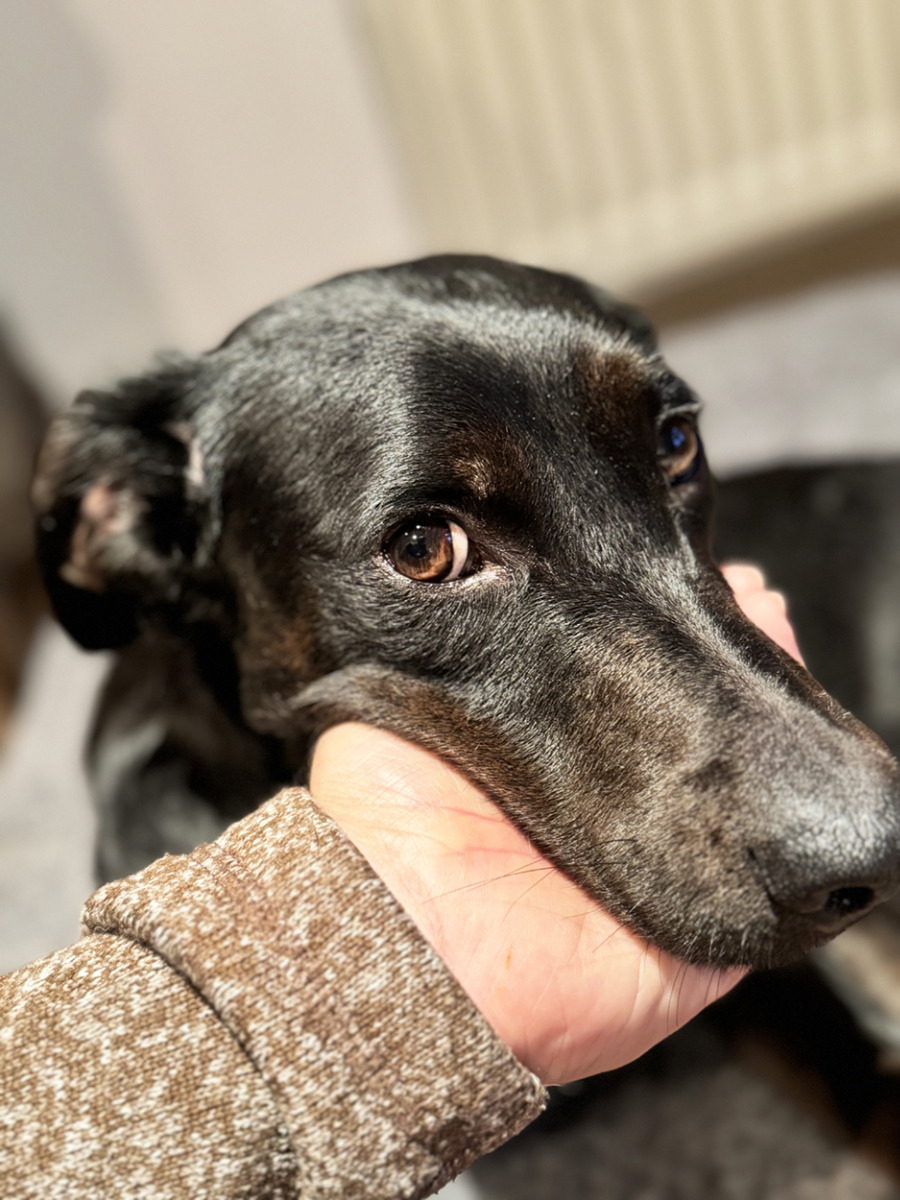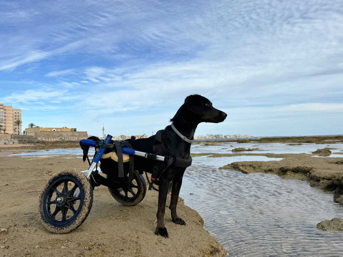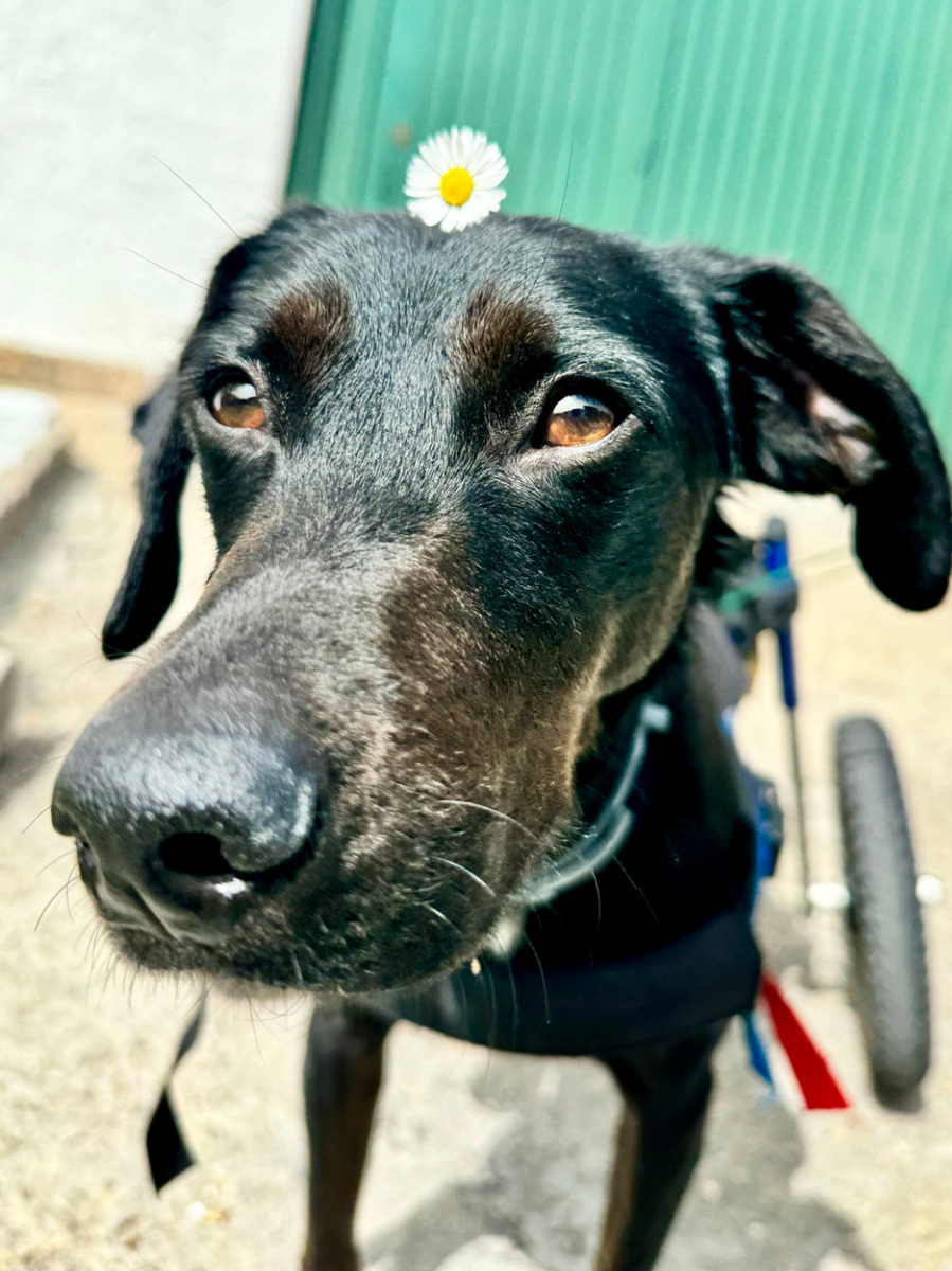 Regaliz – eine Kämpferin mit großem Herzen - Regaliz ist eine etwa 5–6 Jahre alte Mischlingshündin mit mittellangem, schwarzem Fell und einer Schulterhöhe von ca. 48 cm. Trotz ihres schweren Schicksals hat sie sich ihre Lebensfreude und ihre Liebe zu Menschen bewahrt. Ihre Geschichte - Im April 2023 erhielten wir einen Hinweis auf Regaliz: Tagelang hatte sie sich in einer nahegelegenen Stadt durch die Straßen geschleppt, ohne ihre Hinterbeine bewegen zu können. Beim Tierarzt brachte ein CT-Scan die grausame Wahrheit ans Licht – Regaliz war angeschossen worden. Drei Kugeln steckten in ihrem Körper, eine davon im Rückenmark. Man hatte sie schwer verletzt zurückgelassen, offenbar in der Annahme, sie würde sterben. Noch im Jahr 2023 wurde sie in einer sechsstündigen Operation operiert. Zwei Kugeln konnten entfernt werden, die Dritte im Rückenmark jedoch nicht. Regaliz überlebte und wurde von einem Pärchen adoptiert. Wie hatten wir und die Freiwilligen der Perrera sich gefreut, dass die süße Maus ein liebevolles Zuhause fand!! Leider ist die Beziehung zerbrochen, und keiner von beiden kann sich weiterhin um sie kümmern und so braucht Regaliz, die in ihrem Zuhause Pepa genannt wurde, ein neues Zuhause. Sie ist eine absolut menschenfreundliche Hündin. Regaliz ist sozial, offen und genießt Nähe und Aufmerksamkeit - sie liebt es Zeit mit ihrem Menschen zu verbringen! Mit anderen Hunden – egal ob Rüde oder Hündin – kommt sie gut zurecht, ebenso mit Katzen. Sie ist super-verträglich, super-angenehm und einfach super-besonders🥰. Insbesondere ihre Lebensfreude ist bemerkenswert: Die hübsche Hündin mit dem schwarzen Fell hat gelernt, sich mit einem Rollstuhl fortzubewegen, liebt es zu rennen und ist begeistert, wenn sie mit einem Ball spielen darf. Ihre gute Laune ist ansteckend und sie ist eine Hündin, bei der stetig die Sonne im Herzen scheint. Durch die im Rückenmark verbliebene Kugel leidet Regaliz an einer Bleivergiftung und ist dauerhaft gelähmt. Sie hat weder Bewegungsfähigkeit noch Gefühl in den Hinterbeinen. Zudem ist sie inkontinent und braucht Unterstützung beim Urinieren und Koten. Mit der richtigen Pflege und Routine kommt sie damit jedoch gut zurecht. Regaliz sucht ein Zuhause bei Menschen mit Herz, Geduld und Verantwortungsbewusstsein – Menschen, die bereit sind, sich auf die besonderen Bedürfnisse einer gehandicapten Hündin einzulassen und ihr die Liebe und Sicherheit zu geben, die sie so sehr verdient. Sie gibt diese Liebe tausendfach zurück. Regaliz ist der Beweis dafür, dass Lebensfreude und Vertrauen selbst nach schlimmsten Erfahrungen weiterleben können. 💛