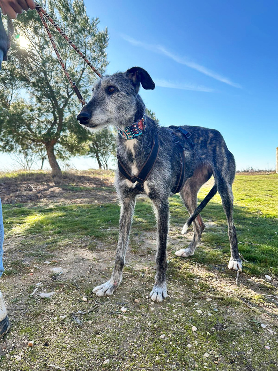 Unsere zauberhafte Fussel-Galga Nika wurde gemeinsam mit Liria im Februar 2026 von ihrem Jäger abgegeben. Als Nika in der Albergue ankam, war sie völlig ängstlich und verunsichert – von einem Moment auf den anderen hatte sich für sie einfach alles verändert. Noch kann Nika dem Menschen nicht vertrauen und weicht direktem Kontakt lieber aus. Die Angst sitzt tief, und Vorsicht ist für sie ein wichtiger Schutz. Doch liebe Nika: Raus aus der Angst, denn in dir steckt so unglaublich viel Potenzial. Um dem stressigen Alltag der Albergue zu entkommen und gleichzeitig behutsam Nähe zum Menschen kennenzulernen, darf Nika nun regelmäßig mit dem Menschen spazieren gehen. Und das meistert sie mit Bravour. Draußen, Seite an Seite mit dem Menschen, zeigt sie, wie viel Mut in ihr steckt und wie sehr sie bereit ist, Neues zu lernen. Wir sind uns sicher: Nika ist nicht nur äußerlich wunderschön – sie hat auch ein ganz zartes, liebevolles Wesen. Sie ist lieb, brav und gibt sich große Mühe, Schritt für Schritt anzukommen. Jetzt darf sie weiter lernen, wie schön gemeinsame Spaziergänge mit dem Menschen sein können und dass Nähe auch Sicherheit bedeutet. Wo sind die Fans dieser bezaubernden Fussel-Galga? 💛 Interessenten sollten sich über die Rasse Galgo español informieren. - Eine Vermittlung ist ausschließlich innerhalb Deutschlands möglich.