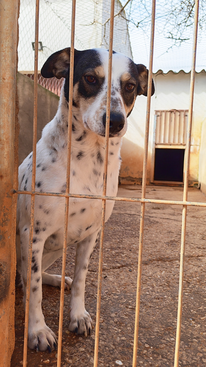 Unsere Karma lebt seit Herbst 2025 in der Perrera. Als sie dort ankam, war sie hochträchtig – nur zwei Tage später brachte sie ihre beiden wunderbaren Töchter Yin und Yang zur Welt. Karma ist die Schwester von Aroa und Iziar, die beide in der Albergue leben. Leider hatten alle drei das gleiche schwere Schicksal. Fernab von Impfungen, ausreichender Nahrung und menschlicher Zuwendung lebten sie größtenteils auf sich allein gestellt in einer einfachen Baracke, die kaum Schutz vor Wind und Wetter bot. Kein Wunder also, dass Karma noch sehr ängstlich ist. Zu schlecht sind die Erfahrungen, die sie bislang in ihrem Leben machen musste, und zu wenige positive Begegnungen mit Menschen durfte sie bisher kennenlernen. Dennoch zeigt Karma Schritt für Schritt kleine Fortschritte und beginnt langsam, Vertrauen zu fassen. Sie ist eine sehr liebe Hündin und hat sich rührend um ihre beiden Töchter gekümmert. Nun ist es an der Zeit, dass auch Karma ihre Chance bekommt. Außerhalb ihres Kennels hat Karma derzeit noch große Angst. In ihrem Kennel fühlt sie sich sicher, und von dort aus wagt sie sich mittlerweile auch gelegentlich in den Auslauf. Alles außerhalb der Perrera verunsichert sie jedoch noch sehr. Wir hoffen, dass die Mitarbeitenden vor Ort ihr weiterhin helfen können, mehr Sicherheit zu gewinnen und neue positive Erfahrungen zu sammeln. Für Karma suchen wir daher unbedingt ein Zuhause bei Menschen mit Erfahrung im Umgang mit ängstlichen Hunden. Menschen, die wissen, wie man solchen Hunden mit Geduld, Ruhe und Verständnis begegnet, ihnen Sicherheit vermittelt und sie Schritt für Schritt in ein neues Leben begleitet. Karma braucht Zeit, Einfühlungsvermögen und liebevolle Führung – doch wir sind sicher, dass in ihr eine ganz wunderbare Hündin steckt, die nur darauf wartet, endlich ankommen zu dürfen.💛 - Eine Vermittlung ist ausschließlich innerhalb Deutschlands möglich.
